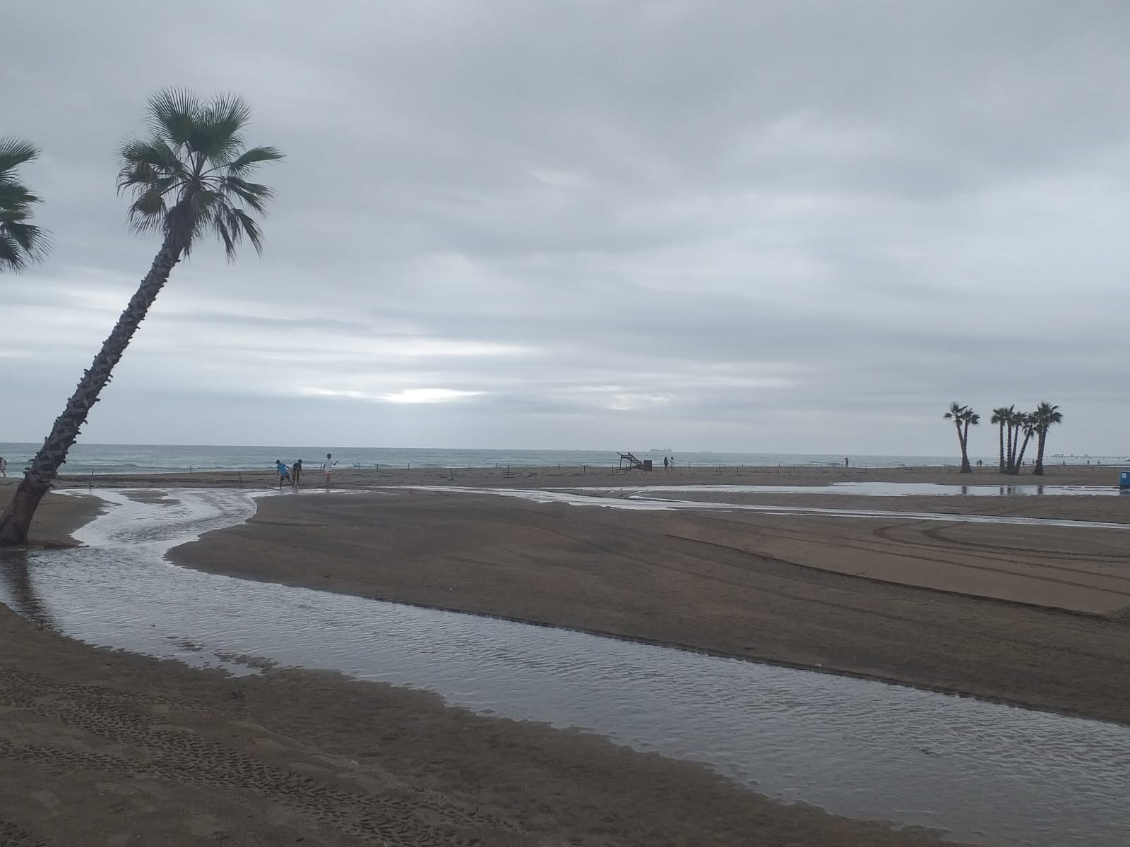 La tromba de agua obligó a rescatar personas atrapadas en vehículos, a cortar calles inundadas, a interrumpir la circulación de los trenes de Cercanías y a cerrar las playas de ambas localidades por daños en el mobiliario y socavones.