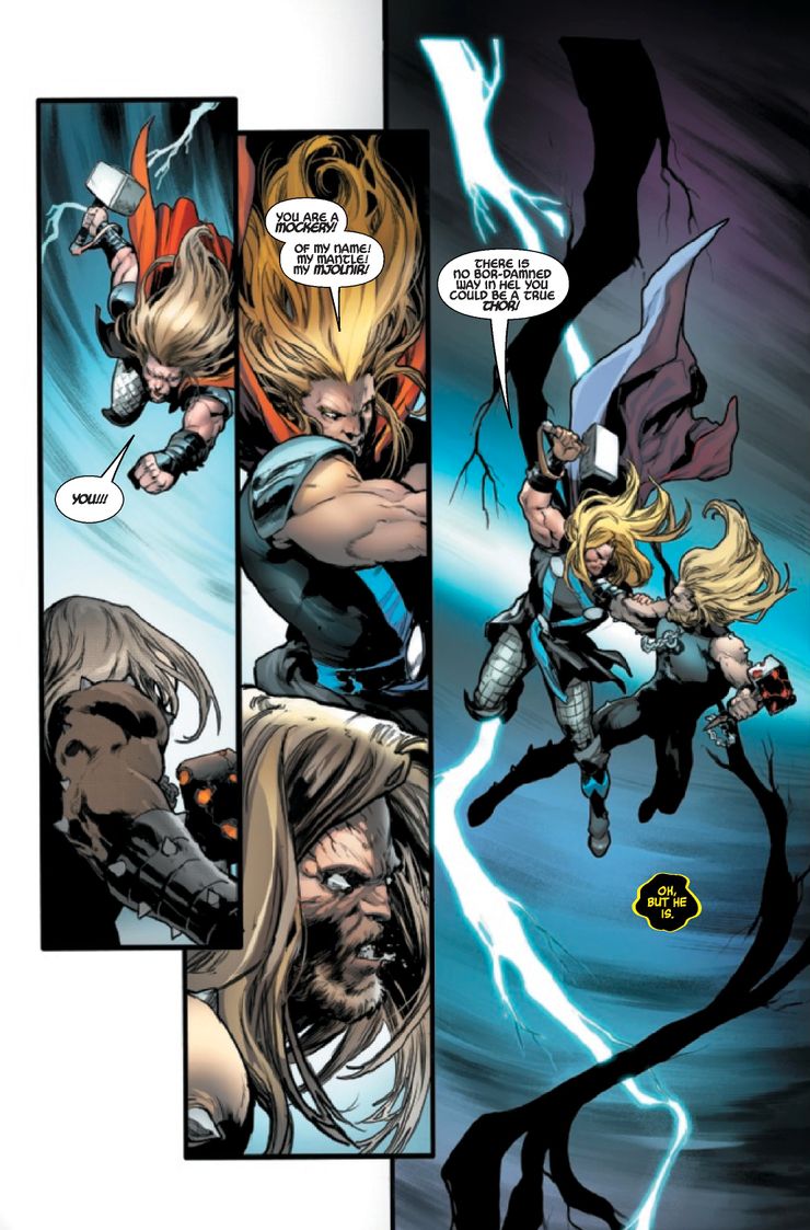 Thor está luchando contra una versión corrupta de sí mismo controlada por Dark Phoenix, que dice ser la madre del Dios del Trueno.