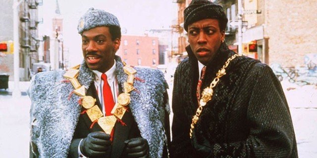 Viniendo a America fue lanzado en 1988 y siguió a Murphy's Akeem, un príncipe africano mimado de la rica nación ficticia de Zamunda que se rebela contra un matrimonio arreglado y se dirige a Estados Unidos para buscar una nueva novia. El padre de Akeem (interpretado por James Earl Jones) le permite 40 días para pasear por el país, pero también envía al fiel retenedor Prmi (Arsenio Hall) del príncipe. Como se puede suponer, Akeem, de hecho, encuentra a una mujer que le interesa y le siguen, entre ellas Akeem y Semmi consiguiendo trabajo en un restaurante de comida rápida.