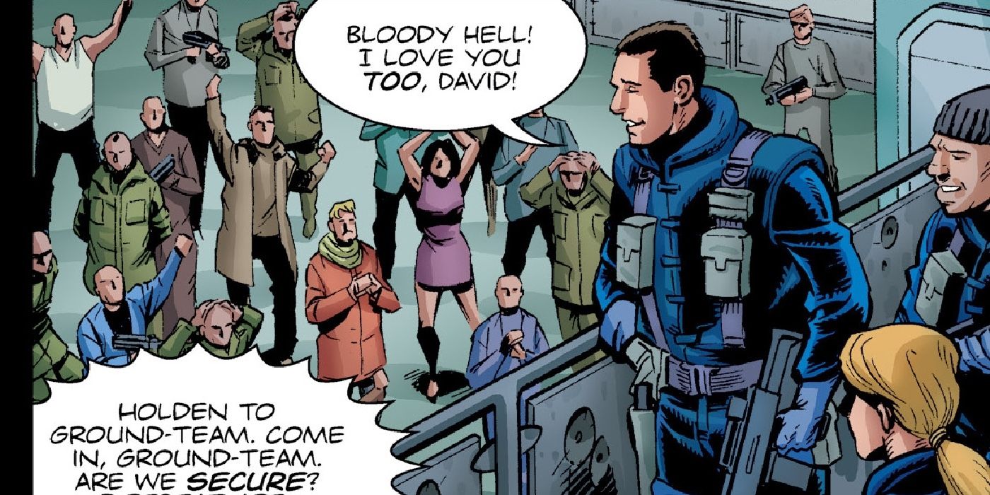 Un final visto en el último número de 2012. Kingsman: El servicio secreto de Mark Millar y Dave Gibbons, aunque no adaptado en absoluto en la película, el final original vio a Eggsy salvar a un puñado de celebridades, incluidos David Beckham, Mick Jagger, Pierce Brosnan, Patrick Stewart y más, después de un exitoso asalto total. sobre la malvada fortaleza del Dr. James Arnold. Al liberar a las celebridades de sus prisiones, Eggsy es elogiado por los antiguos cautivos, con David Beckham dijo específicamente: “Buena, amigo. Bien hecho. Excelente trabajo”, un sueño hecho realidad para un personaje de “de la pobreza a la riqueza” como Eggsy.