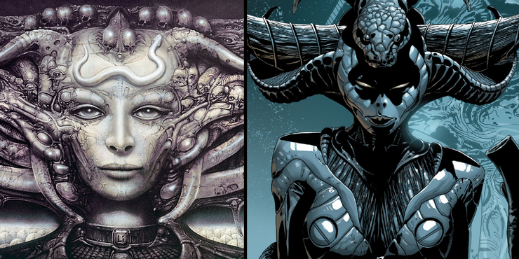 Aunque el diseño de la Mujer en la Oscuridad es notablemente diferente al de los Xenomorfos que comanda, la criatura en realidad tiene mucho en común con el arte de Giger, sobre todo con sus pinturas. Li yo y Li II basado en su amante y musa Li Tobler. Ejemplos del estilo “biomecánico”, muchos elementos de las pinturas de Giger, conocidas como la serie “Necronom”, eventualmente se adaptarían a la película. Extraterrestre. La “Mujer” en el número 6, conocida por el protagonista Gabriel Cruz como un ser de sus propias pesadillas, se interpreta dentro de la serie como el posible destino final de la humanidad una vez que cae en la tentación aparentemente inevitable de fusionarse con los Xenomorfos. Si la Mujer en la Oscuridad realmente trabaja en el Extraterrestre universo o no depende de los fanáticos, pero su parecido con el arte de Giger muestra que no fue una adición al azar, y aparentemente comparte raíces con los monstruos más sencillos de la franquicia.