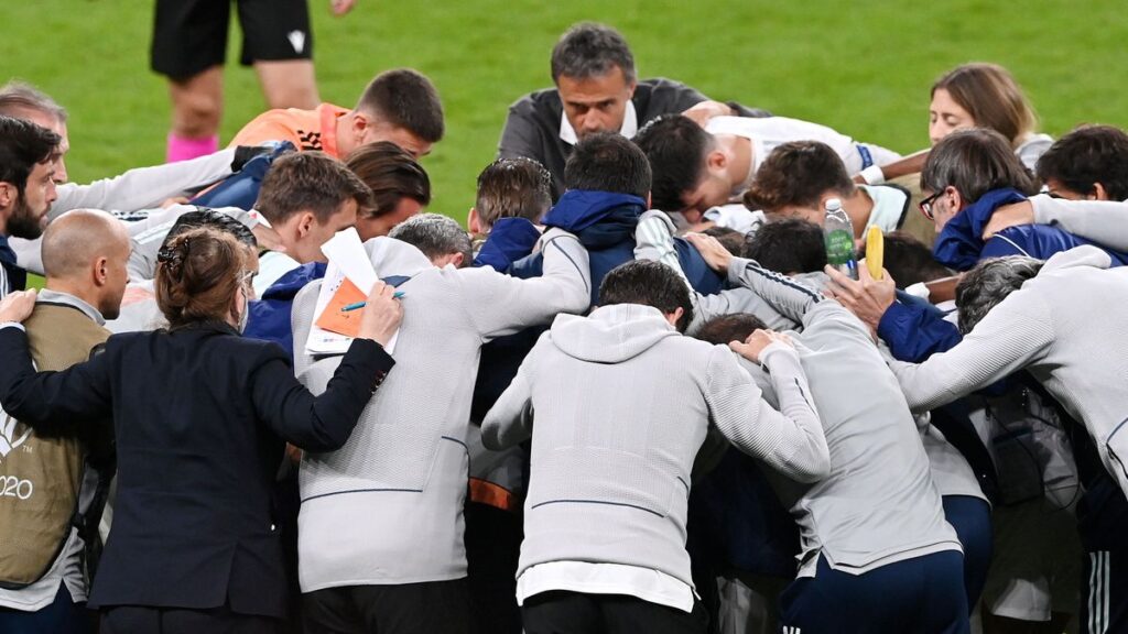 Con la ayuda del psicólogo, Joaquín Valdés, tocar la fibra del colectivo o las individuales también han sido una constante en el día a día del seleccionador y su cuerpo técnico. Contra Eslovaquia, con el partido ya resuelto, decidió reemplazar a falta de un cuarto de hora a Azpilicueta por unas ligeras molestias. Marcos Llorente, el otro lateral derecho, había calentado, pero finalmente eligió a Adama Traoré para que al menos pudiera contar que debutó en el torneo. “Juegan Morata y diez más”, fue otra proclama destinada a reforzar a uno de los jugadores que ha jugado bajo más presión. “Hay que tener memoria de pez, como los tenistas que olvidan la bola que acaban de fallar”, se lo dedicó a Unai Simón tras su error ante Croacia.