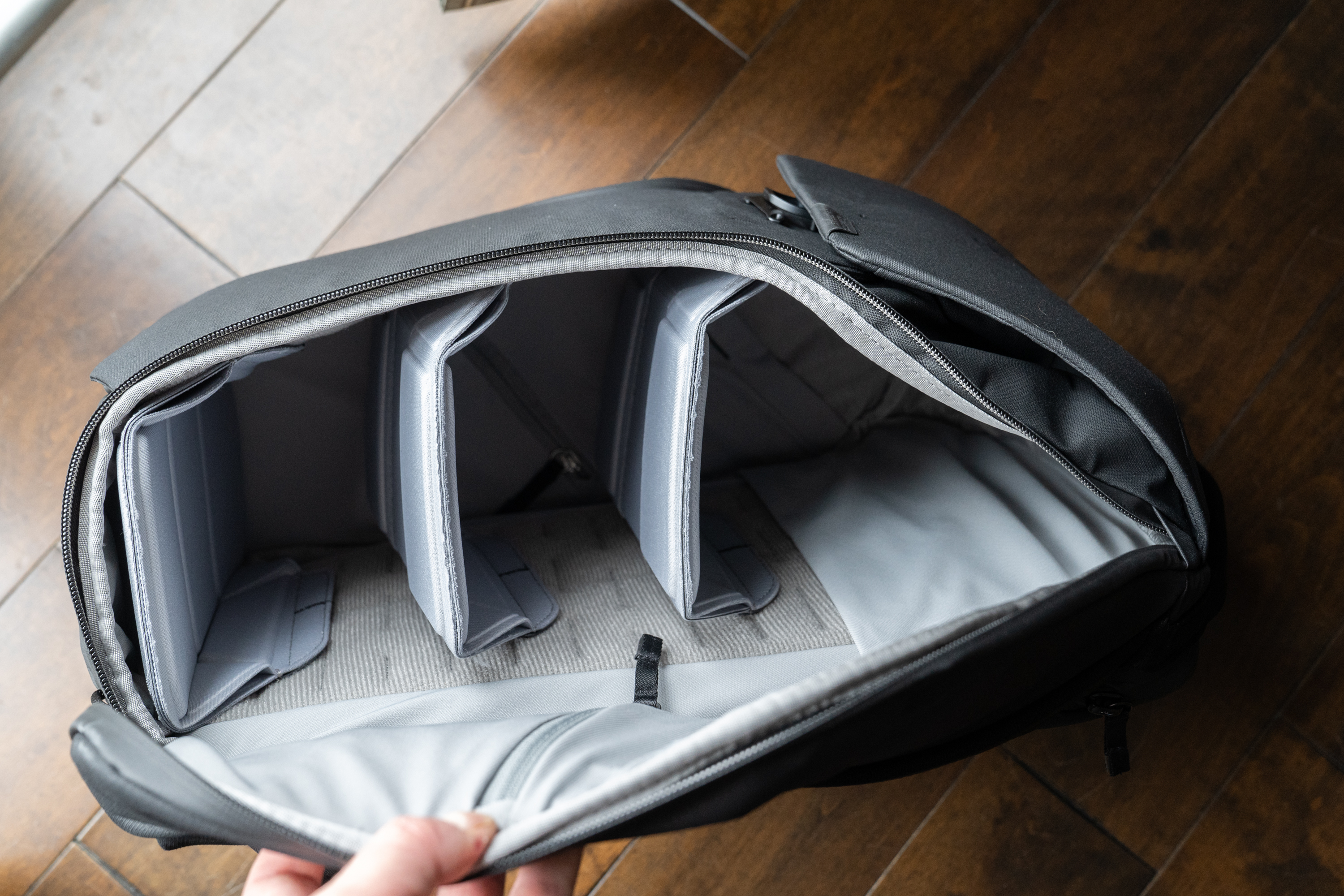 El cierre con cremallera también es interesante por derecho propio, lo que le permite abrir completamente la parte posterior de la bolsa si lo desea. Por defecto, hay divisores rígidos en la mochila para darle estantes de manera efectiva, pero si desea eliminarlos, esto hace que esta sea la mochila Peak más fácil de empacar en este rango de tamaño de mochila. Por lo tanto, es una excelente opción para aquellos que buscan una mochila para otros fines que no sean una bolsa para cámara.