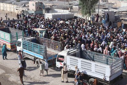 Decenas de personas esperan en el paso fronterizo de Spin Boldak para pasar de Afganistán a Pakistán el pasado 2 de septiembre.