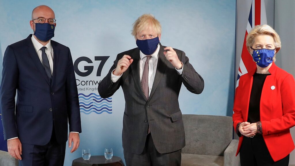 Todos disfrutan de la simpatía de Johnson, pero nadie baja la guardia. Biden ha querido mostrar en suelo británico su lado más amable, pero antes le ha dado un tirón de orejas a Downing Street por “inflamar la tensión” en Irlanda del Norte. Macron, la canciller alemana Angela Merkel, la presidenta de la Comisión Europea, Ursula von der Leyen y el presidente del Consejo Europeo, Charles Michel, se dejaron fotografiar juntos el viernes, en una mesa al borde del mar, como los invitados de una boda a la que han acudido a disgusto y en la que el tiempo no acompaña. Antes de acudir a la barbacoa en la playa que los organizadores han preparado para última hora de este sábado, todos ellos habrán tenido encuentros bilaterales con el primer ministro. Y le habrán advertido de que la UE está dispuesta a abrir una guerra comercial con Londres si persiste en evadir unilateralmente los controles aduaneros entre Irlanda del Norte y Gran Bretaña, y saltarse así las obligaciones que asumió en un tratado internacional que costó años construir. Macron, según medios franceses, ha señalado a Johnson que las relaciones entre sus dos países solo se podrán “resetear” si el primer ministro británico se compromete a cumplir su parte del acuerdo del Brexit, según han contado varios medios franceses.
