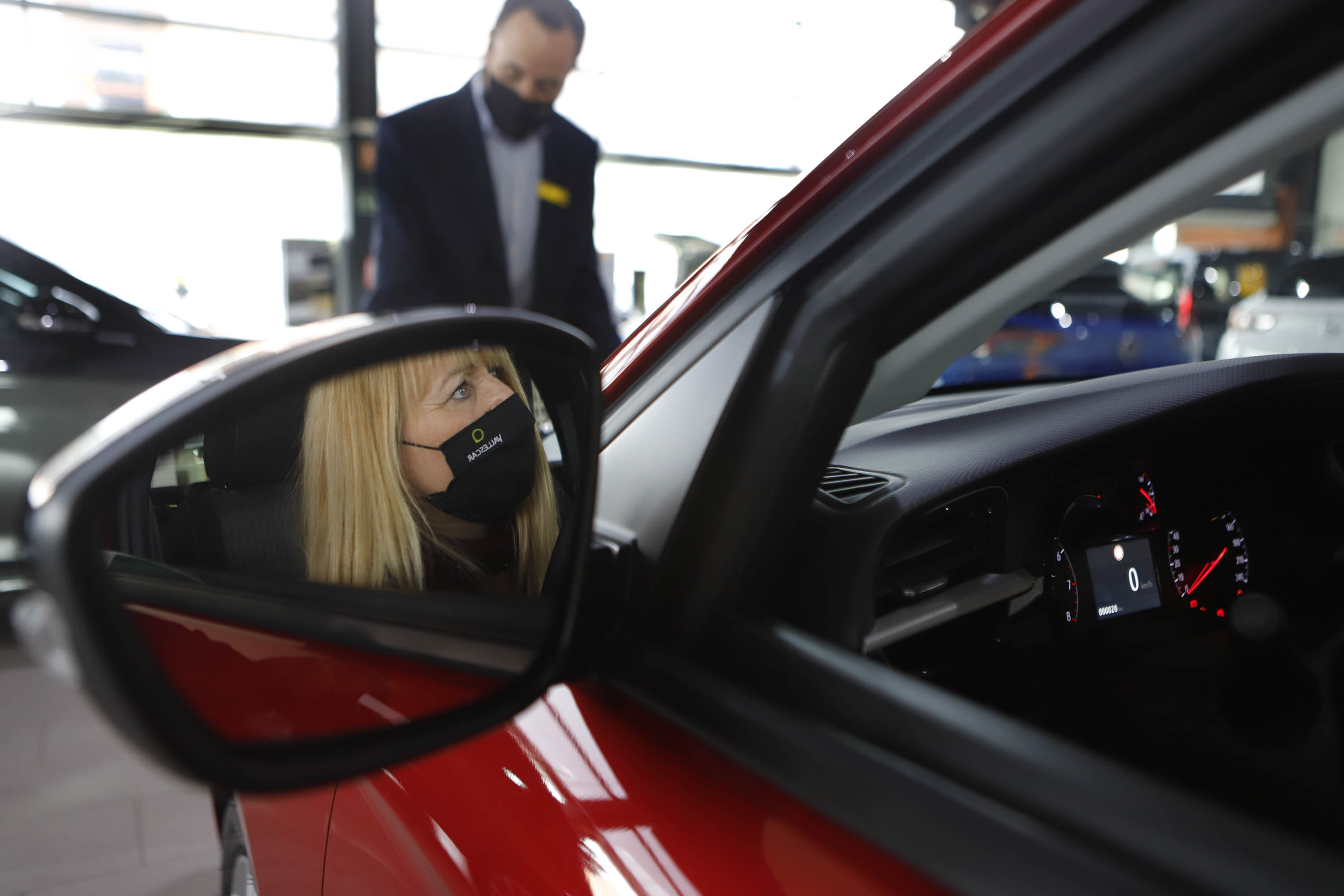 Una mujer comprueba el interior de un vehículo en un concesionario de Terrassa.CRISTOBAL CASTRO