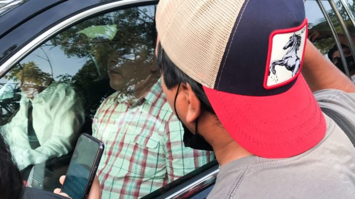 Le contestaron que no, que demandaban una reunión con él. El presidente se negó y subió los vidrios, mientras personas de seguridad intentaban persuadir que lo dejaran pasar.
