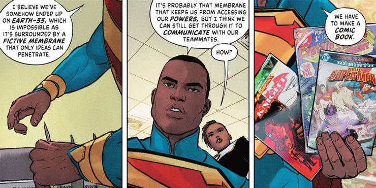 Hablando con Doctor Multiverse sobre su situación, el presidente Superman dice: “Creo que de alguna manera terminamos en la Tierra-33, lo cual es imposible ya que está rodeado por una membrana ficticia que solo las ideas pueden penetrar”. Pasando a aclarar que, “Probablemente sea esa membrana la que nos impide acceder a nuestros poderes”, el presidente Superman no solo llama la atención sobre por qué nadie tiene superpoderes en el mundo real, sino que también confirma que si Superman alguna vez llegó a las costas de la Tierra -33, podría ser asesinado tan fácilmente como cualquier otra persona.