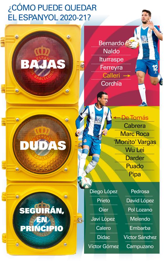 Desde la dirección deportiva urge trabajar desde ya con el objetivo de hacer realidad un proyecto competitivo para volver en un año a Primera. Para empezar, el primer reto, una vez atado el nuevo entrenador, será configurar una nueva plantilla con una base de la actual. Sí, una nueva, pues puede darse el caso que hasta 14 jugadores del plantel de los 26 futbolistas que han afrontado este curso, dejen el Espanyol este verano.
