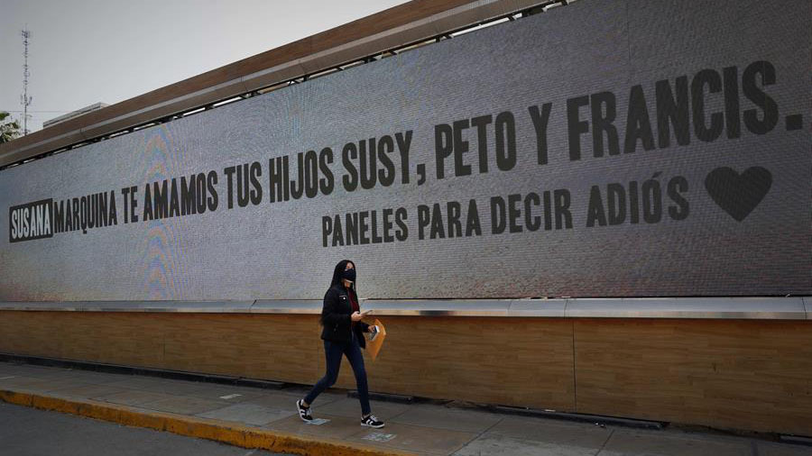 Ese mensaje se lee estos días en una concurrida avenida de Lima, uno de los miles que los peruanos han escrito en paneles publicitarios para dar el último adiós a sus seres queridos muertos durante el tiempo de pandemia del coronavirus.