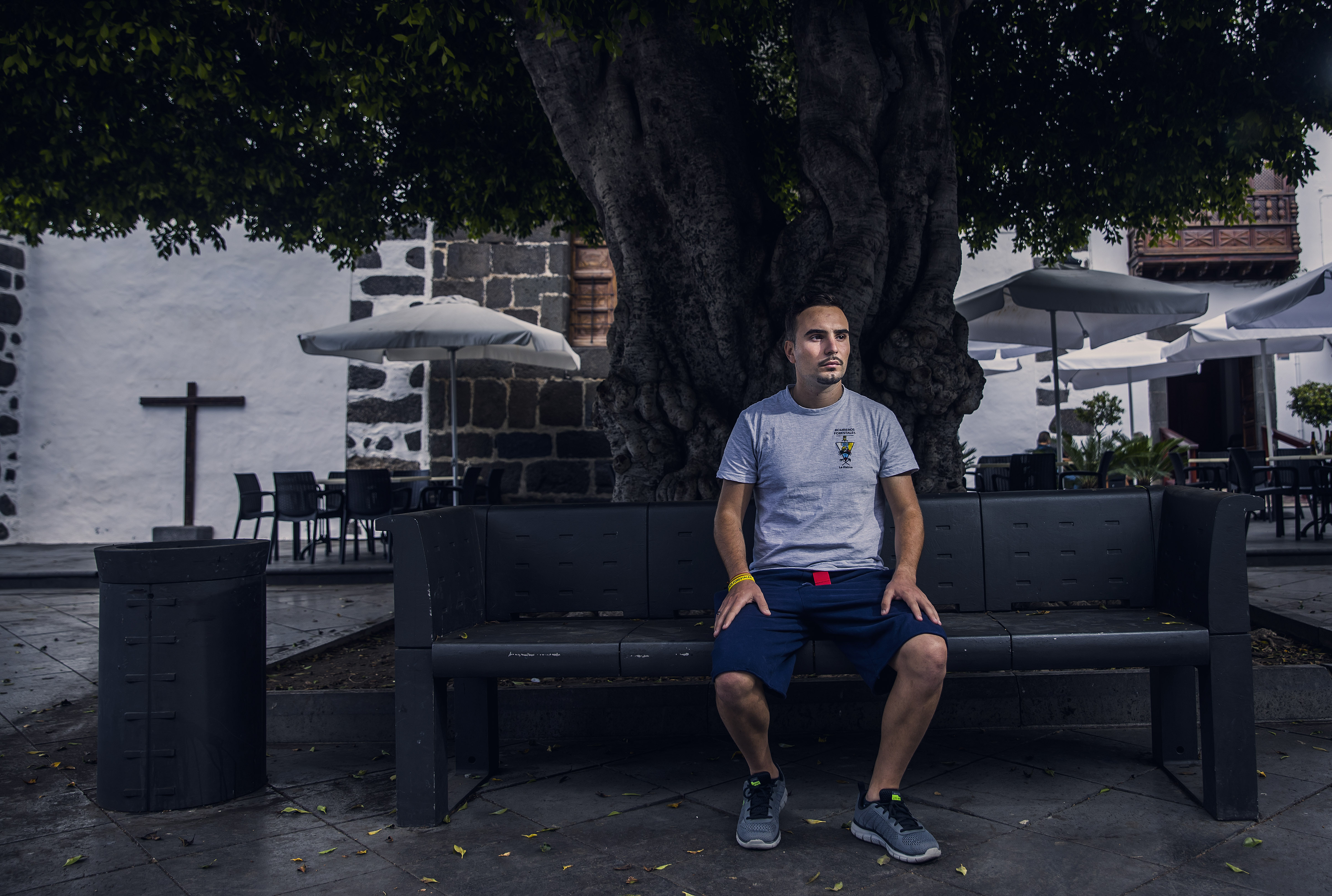Soy bombero forestal. El lunes, al día siguiente de lo del volcán, fui a trabajar. Pero luego no he podido. Ya no he podido. Me han dado de baja. Me muero de tristeza. Estoy viendo a los psicólogos que nos mandan. Mi padre trabaja en la construcción, pero la empresa queda en la zona que han desalojado. Mi madre es empaquetadora de plátanos. Y le pasa lo mismo. No saben si recuperarán su trabajo. Mi padre está destrozado. Y mi madre, aún peor. Mi hermano vino de Barcelona en cuanto se enteró. Yo tengo solo un suéter. Mi padre una chaqueta. Mi madre no tiene nada, ni una chaqueta. No se la cogí cuando fui a la casa ayer, y por eso no tiene. Creo que esta tarde iremos al campo de fútbol de El Paso, donde dan ropa y comida. No nos gusta pedir, nunca hemos pedido nada, pero no nos queda otra. Tenemos todo arriba.