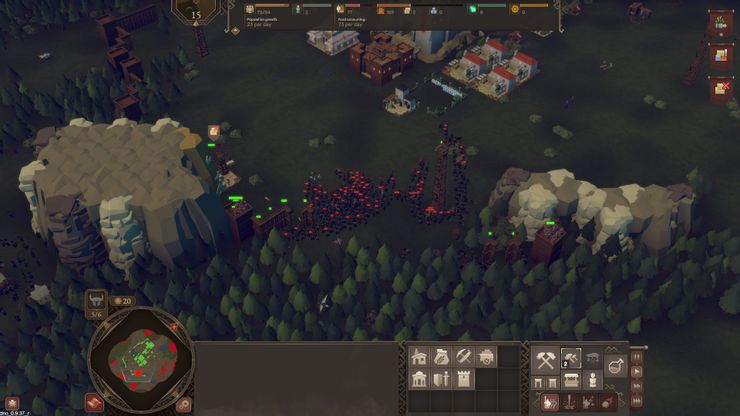 Si bien el título tiene la idea de un juego de Tower Defense en su núcleo, mecánicamente es un RTS, con el giro de que solo hay una táctica viable real para superar el nivel: tortugas. Aparte de eso, todas las características de otros juegos de estrategia en tiempo real están presentes, desde la recolección de recursos hasta los árboles tecnológicos. La recolección de recursos es lo que ocupará la mayor parte de La diplomacia no es una opciónEl tiempo de juego de , ya que administrar y acumular una afluencia constante de personas, alimentos, madera, piedra, hierro y monedas es la forma de construir las armas y las defensas necesarias para sobrevivir.