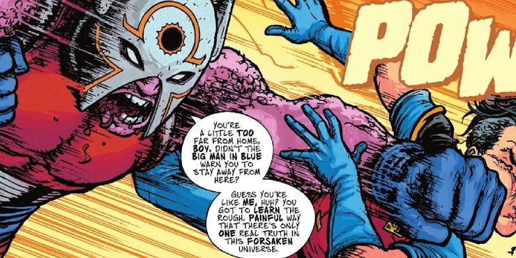 Dark Crisis: Mundos sin una Liga de la Justicia – Superman #1 está escrito por Tom King con el artista Chris Burnham como el primero de crisis oscura‘ Mundos sin una liga de la justicia problemas de vinculación. Al tratar de ser un héroe para los planetas más allá de la Tierra, Jon hereda la rivalidad de su padre cuando él mismo forma una enemistad con Orion, el hijo de Darkseid. Si bien Orión ha sido retratado como un héroe (e incluso como miembro de la Liga de la Justicia en varias ocasiones), Mundos sin una liga de la justicia lo ve como un general de Darkseid, el padre que en la continuidad principal lo cambió por Mister Miracle en un tratado de paz con New Genesis.
