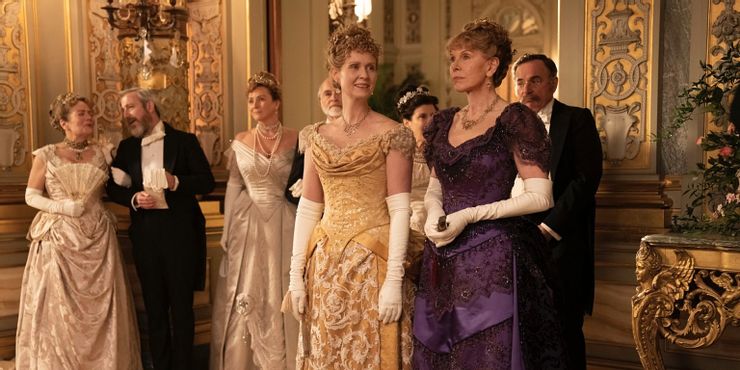 Los dramas del siglo XIX que se enfocan en la alta sociedad contienen algunos de los disfraces más exquisitos y la edad dorada no es una excepción, con hombres y mujeres que cortan siluetas elegantes con abrigos de piel de castor y vestidos bulliciosos. El estatus y la riqueza se comunican en cada corpiño de cuentas y bolso de seda, con atuendos que rivalizan con los trajes históricamente más precisos en piezas de época.