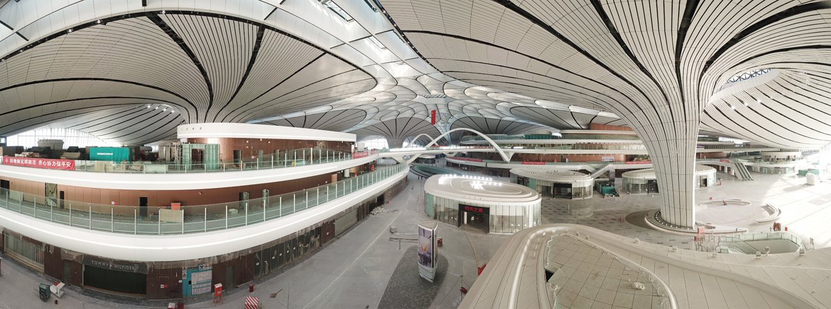 “Es el centro de transporte integrado más grande del mundo. La construcción de la terminal también es la más grande del mundo construida con una estructura de acero sin empalmes, que tiene el primer diseño a nivel mundial de plataformas de salida y llegada de doble piso”, dijo Bai Henghong, director del comando del proyecto del Aeropuerto Internacional Daxing de Beijing del Grupo de Construcción de Beijing.