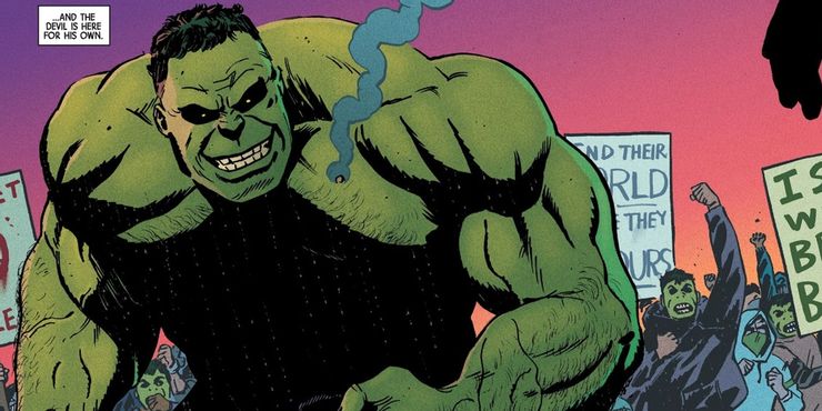 Esta es una dinámica muy interesante para el heroísmo dentro del Universo Marvel. Los héroes típicos son tipos como Reed Richards y Tony Stark. Usan su influencia, riqueza y conocimiento de la ciencia para luchar contra grandes amenazas galácticas que acaban con el mundo. Sin embargo, también luchan en última instancia a favor del statu quo. Como un héroe oprimido que a menudo se ve como un monstruo, Hulk está especialmente calificado para defender a los manifestantes que luchan por un cambio social real, capaz de ejercer una gran influencia en los eventos al encarnar a aquellos que de otro modo se sentirían impotentes.