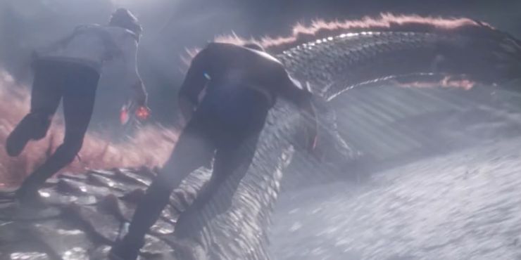 En una reciente Tripulación del corredor video que analiza cómo se hicieron las escenas de efectos visuales populares, el equipo entrevistó al supervisor de WETA FX, Sean Walker, sobre sus contribuciones a Shang-Chi. Según Walker, él y su equipo se inspiraron en el anime al crear secuencias para la película. Un momento durante la batalla final con Wenwu y sus fuerzas involucró a Shang-Chi y su hermana, Xu Xialing (Meng’er Zhang), corriendo a lo largo del cuerpo del enorme dragón Gran Protector. Walker explica que esto fue tomado directamente de un momento en Ataque en Titan durante una escena en la que Eren Yeager corre a lo largo del brazo del gigantesco Titán Colosal.