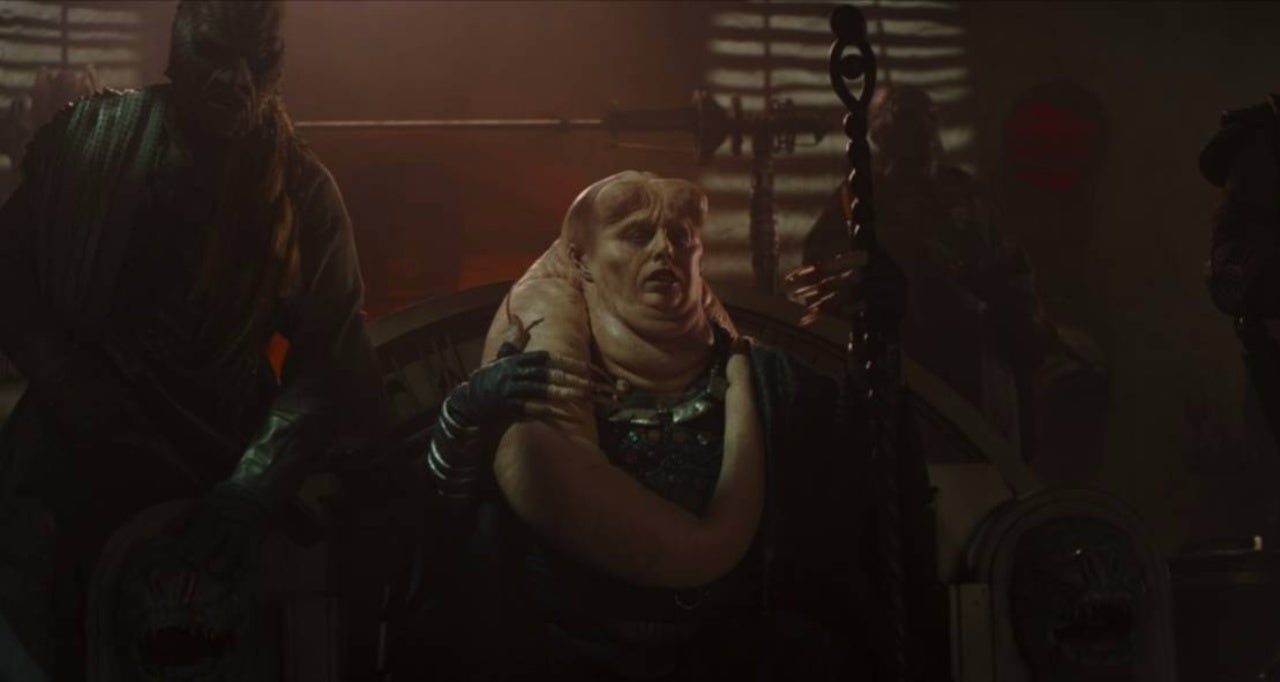 En la escena post-créditos de El mandalorianoEn el último episodio, Boba Fett y Fennec Shand regresan a Tatooine y asaltan la antigua guarida de Jabba. Sentado en el trono en lugar del Hutt está Bib Fortuna, que ahora empuña el bastón exacto que se incluyó con su juguete Kenner.