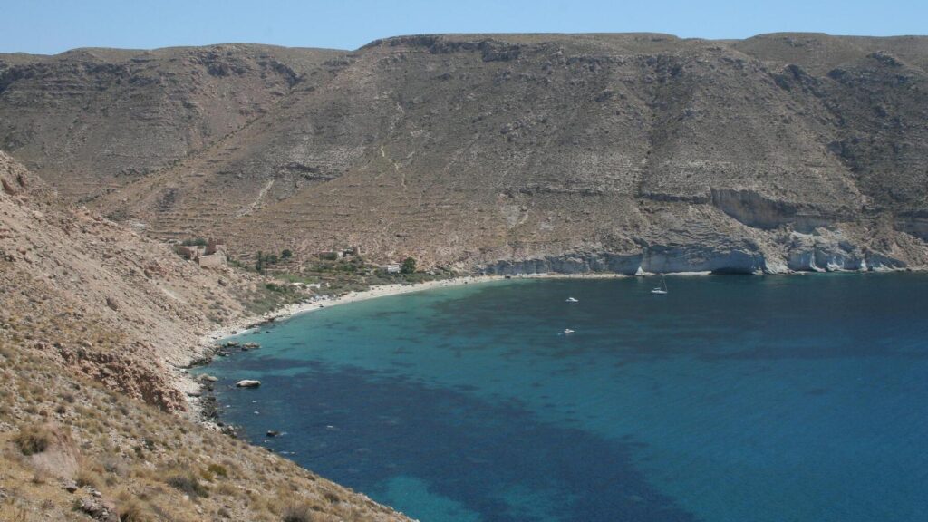 Hablamos de Cala de San Pedro, una de las playas más bellas del Parque Natural Cabo de Gata, en la provincia de Almería. Entre las colinas de este paisaje semidesértico se abre una cala de aguas turquesa y arena blanca. ¡Un paraíso tropical perfecto para desconectar de la rutina!