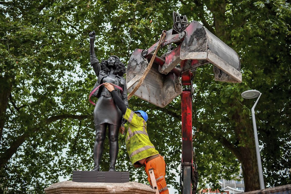 El artista Marc Quinn (Londres, 56 años) descubrió a la activista de Bristol (Inglaterra), Jen Reid, en Instagram. En la foto Jen aparecía subida a un pedestal en el que faltaba la escultura original. En las protestas del pasado junio, durante el Black Lives Matter, la estatua que rendía homenaje al traficante de esclavos del siglo XVII Edward Colston había sido derribada y arrojada al río. Reid se aupó al pedestal sin figura y levantó el brazo, en referencia al Black Power: “Fue un gesto totalmente espontáneo, ni siquiera lo pensé”, explica la manifestante.“Mis pensamientos inmediatos fueron para las personas esclavizadas que murieron a manos de Colston, quería darle poder a George Floyd (muerto tras ser asfixiado por un agente de la policía de Minneapolis durante un brutal arresto), quería darle poder a las personas negras como yo, que han sufrido las injusticias y las desigualdades. Una oleada de poder para todos ellos”, añade Reid. Así surgió A Surge of Power (Jen Reid) 2020, una colaboración entre la activista y el escultor londinense. La pretensión era proteger el orgullo y la dignidad de los vecinos de esta ciudad, en la que nacieron Portishead o Massive Attack. “Esta escultura trata de defender a mi madre, a mi hija, a los afrodescendientes como yo. Se trata de que los niños lo vean allá arriba”, insiste Reid.Marc Quinn, que ha regresado con fuerza a los medios de comunicación, reconoce el latigazo de aquella fotografía. Lo cautivó de inmediato. “Es una imagen tan poderosa que sentí que debía materializarse para siempre”, dice el artista, miembro notable de los Young British Artist, a principios de los noventa. La visión de Reid pasó de Instagram a ser fundida en resina negra y de ahí a ocupar el lugar del esclavista, al menos, durante 24 horas de gloria. Tras ser instalada sin consentimiento al amanecer del pasado miércoles, fue retirada por orden del alcalde.“No colocamos la escultura como una solución permanente a lo que debería estar ahí. Es una chispa que esperamos ayude a atraer la atención continua sobre un asunto que es urgente. El racismo es un problema inaceptable, institucionalizado, al que todos deben enfrentarse”, explica el artista que formó parte de la mítica exposición Sensation, en la Royal Academy of Arts de Londres, en 1997, junto con Sarah Lucas o Damien Hirst. Ahora reclama al arte que dé un paso adelante y pase a la acción directa contra el racismo.Escultura efectivaEl escultor compara esta intervención en el espacio público con la que hizo en el año 2005, en el cuarto plinto de Trafalgar Square, en Londres, cuando creó una escultura de mármol que representaba a la artista Alison Lapper, embarazada. Dice que entonces aprendió lo efectivo que puede ser el arte público “para estimular la atención y la discusión en torno a cuestiones urgentes”. Ese pedestal le pareció el lugar adecuado para compartir esta representación sobre la lucha contra el racismo, “que sin duda es otro virus que enfrenta a la sociedad actual”, indica Quinn.Una vez retirada, si la pieza se vende, todas las ganancias serán donadas a dos organizaciones benéficas, elegidas por Jen Reid: Cargo Classroom, un programa de estudios de historia afrodescendiente creado para adolescentes de Bristol; y The Black Curriculum, una empresa social fundada en 2019 por jóvenes para abordar la falta de historia británica afrodescendiente en el plan de estudios del Reino Unido.El derribo de la escultura de Colston fue uno de los símbolos más poderosos generados por las manifestaciones tras el asesinato de George Floyd. Banksy propuso una solución para mantener la escultura en su lugar adaptada al sentimiento político e ideológico contemporáneo: un conjunto escultórico en el que la estatua del esclavista es derribada por las figuras de los manifestantes. Entretanto llegó la propuesta de Quinn, que se reconoce como un artista que reacciona ante los momentos históricos protagonizados por la comunidad en la que actúa e interviene. “Aquellos que tenemos privilegios debemos ser parte del cambio. Los blancos debemos ser aliados”, indica. El artista recuerda las palabras de Desmond Tutu para aclarar su posición: “Si eres neutral en situaciones de injusticia, has elegido el lado del opresor”. Ahora, un pedestal vacío subraya lo inaceptable. Quizá sea el mejor homenaje.
