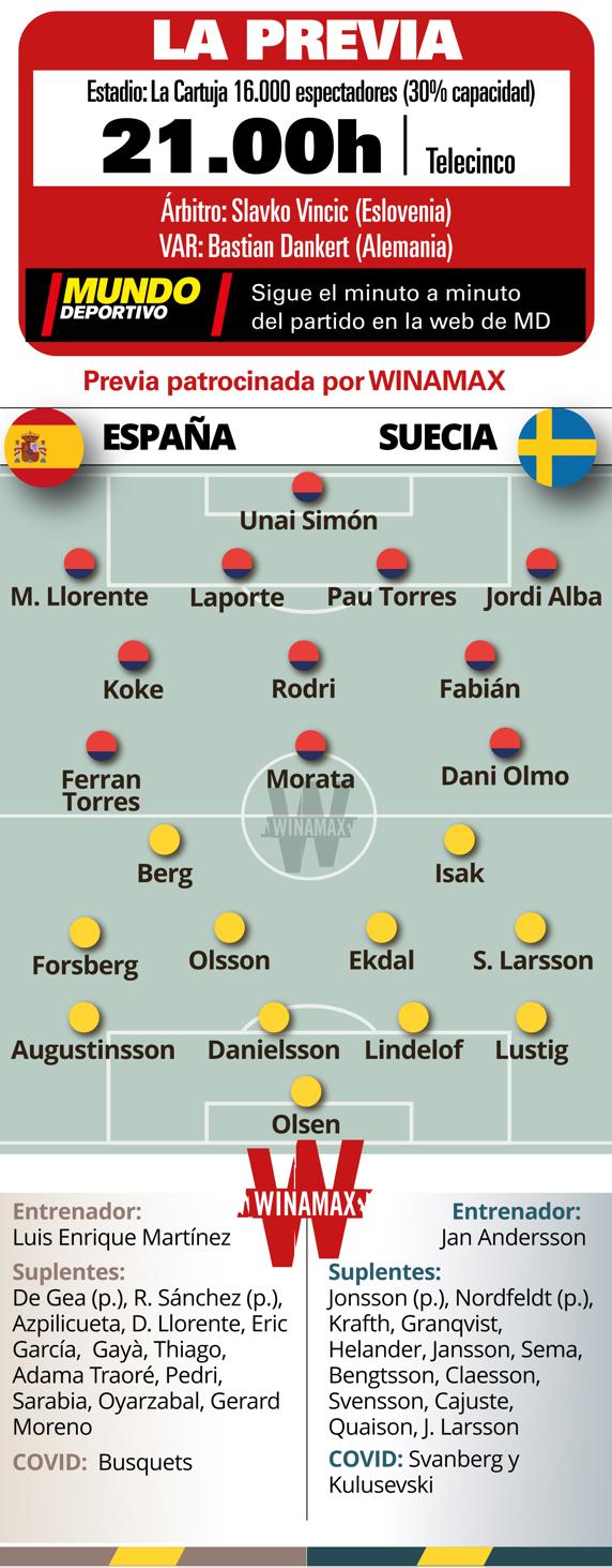 Llorente, que han impedido al seleccionador entrenar de forma grupal con los internacionales y tener que hacerlo por tandas, incluso con los de la burbuja B reclutada a prisa y corriendo y reforzada con once futbolistas de la selección sub 21 que apenas un día antes habían iniciado sus vacaciones. Suecia también ha tenido serios problemas con el coronavirus, que le deja sin su estrella, el extremo Dejan