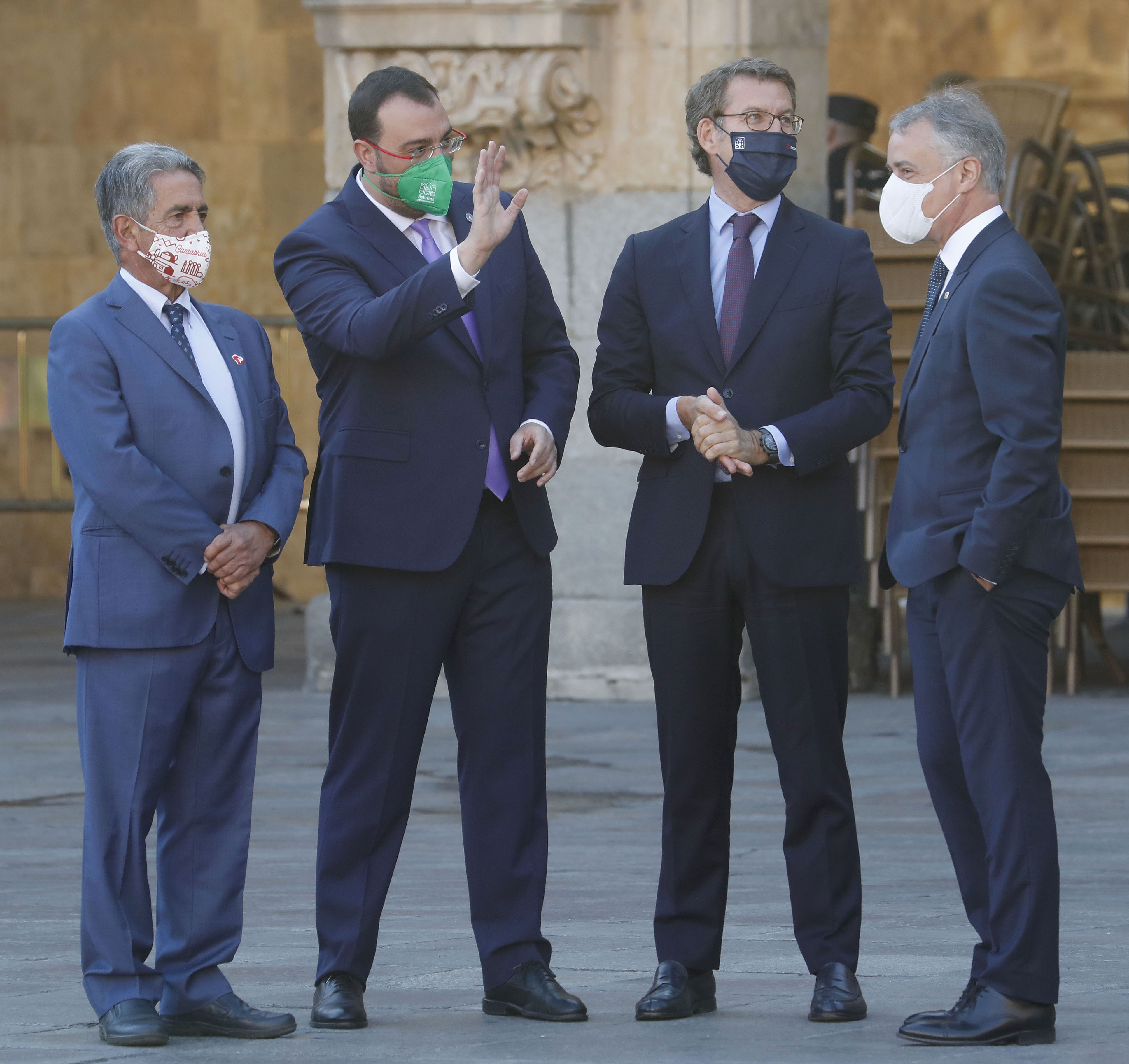 El foro de presidentes que se celebrará en Galicia toma el testigo de la reunión celebrada en septiembre de 2018 en Zaragoza y a la que acudieron los dirigentes de Asturias, Castilla-La Mancha, Castilla y León, Galicia, La Rioja y Aragón. De aquella foto oficial, solo siguen en el cargo y repiten asistencia Feijóo y el castellano-manchego Emiliano García-Page. El presidente de Aragón, Javier Lambán, no ha confirmado su presencia en la próxima cita, aunque Feijóo cuenta con que se una alguna comunidad más en los próximos días.