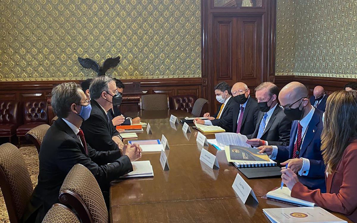 En su última actividad oficial en Washington, el canciller Marcelo Ebrard y el embajador Esteban Moctezuma se reunieron con representantes de empresas globales de los sectores aeroespacial, farmacéutico, transporte, comercio electrónico, innovación y agrícola, entre otros, a fin de resaltar las oportunidades que se abren en el país con la recuperación económica pospandemia.