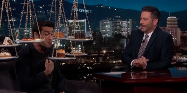 Debido a que llegó el final de la producción, Nanjiani pudo romper su dieta por primera vez en un año, atiborrándose de pizza y pastel, todo gracias a Kimmel. Hacia el final de su entrevista, un candelabro que empuñaba un pastel descendió del techo del estudio con varios platos de pastel, tartas y varios otros dulces a cuestas. El programa incluso recibió una pizza entregada solo para la nueva estrella de Marvel, de la que rápidamente se come una porción. Nanjiani había seguido una dieta estricta para mantener la apariencia del nuevo físico cincelado que tenía que lograr para Los eternos.