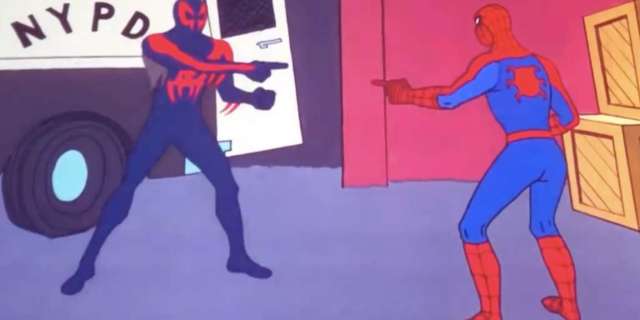 El clásico "Spider-Meme" fue tan popular que incluso se usó en el reciente Spider-Man: Into The Spider-Verse, que fue tan disfrutado que incluso ganó un Premio de la Academia a la Mejor Película de Animación contra una gran competencia. En la escena post-crédito de la película, el futuro Spider-Man del año 2099, Miguel O'Hara, regresa al pasado y recrea el meme con el animado Spider-Man de los años sesenta. Mientras los dos discutían, un perplejo oficial de policía y editor del Daily Bugle miraron desconcertados cuando terminó la película.