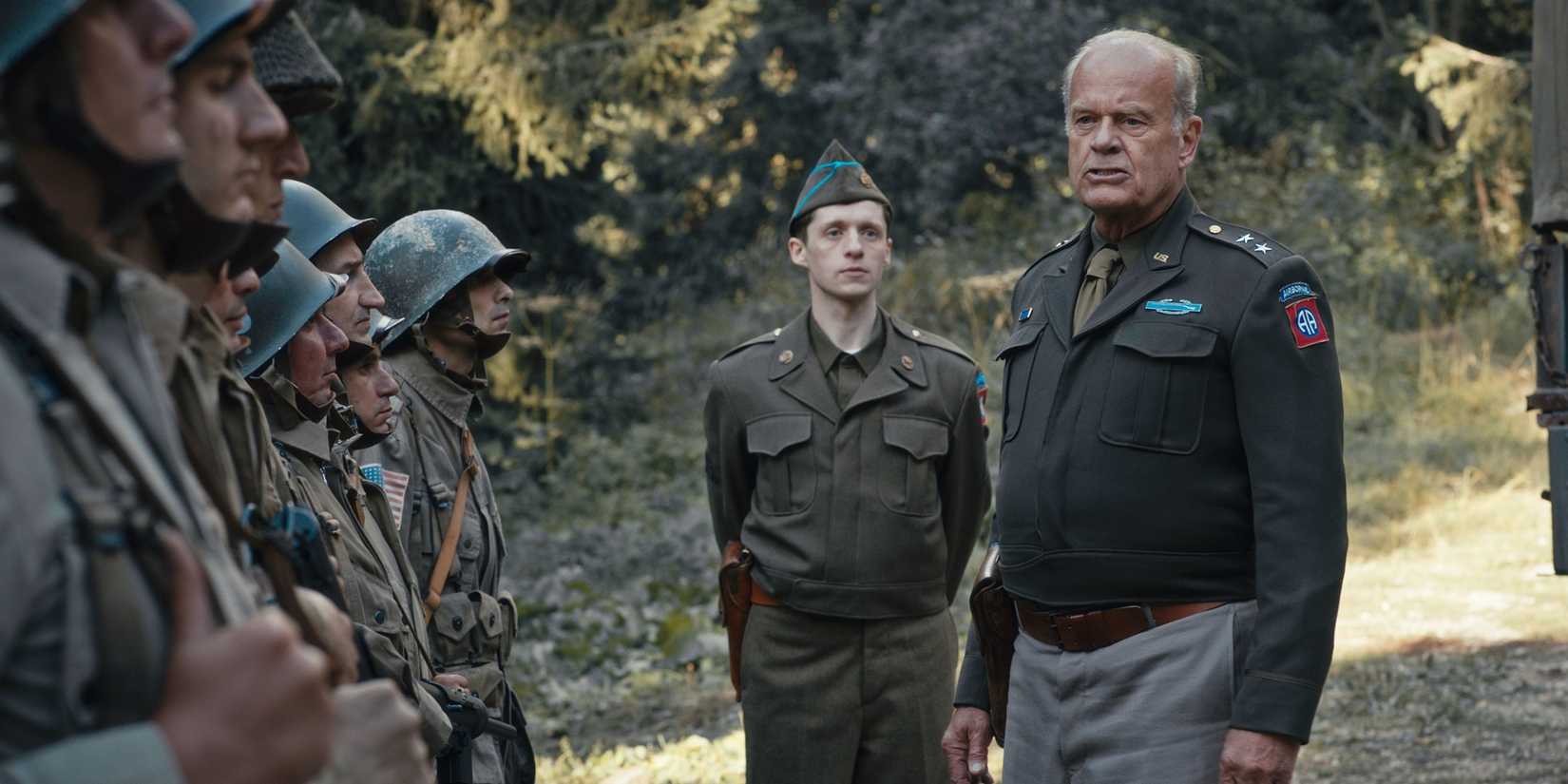 Se necesita mucha investigación para ello. Obviamente, lo más importante, creo, es que sientas que estos chicos están conectados entre sí. Así que, en realidad, la química entre nosotros en el set fue fundamental para que sintiéramos una verdad real cuando estábamos en pantalla. Así que todos veíamos Band of Brothers juntos al mismo tiempo, todos nos enviábamos videos de YouTube. Ninguno de nosotros es un gran lector, no nos enviábamos libros ni cosas así. Fue realmente genial. Y, sobre todo, teníamos un cronograma de rodaje muy corto. Así que fue duro. Eran días muy, muy largos. Y a veces veías a uno de tus compañeros actores perder la energía, y era nuestra responsabilidad levantar al otro. Así que hubo mucho de eso, lo cual es genial.