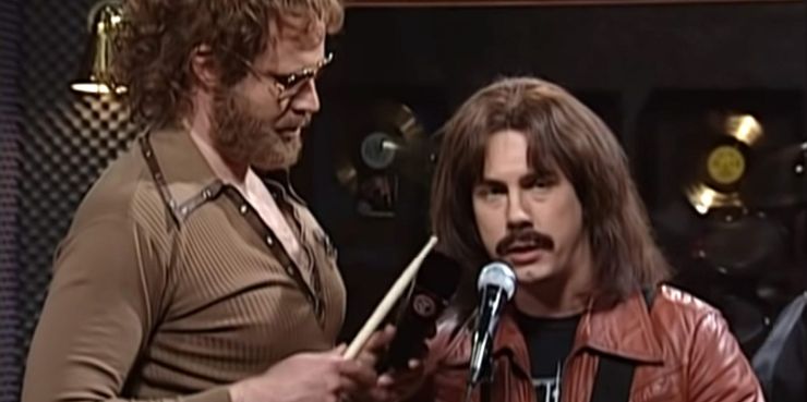 En SNLEl episodio 16 de la temporada 25 de ‘s, presentado por el actor ganador del Premio de la Academia Christopher Walken, Parnell participó en el boceto “More Cowbell”, escrito originalmente por Will Ferrell y el dramaturgo Donnell Campbell. Walken interpretó al productor musical Bruce Dickinson mientras intentaba producir la exitosa canción de Blue Öyster Cult “(Don’t Fear) The Reaper”. Durante la grabación, el personaje ficticio Gene Frenkle (Ferrell) toca con entusiasmo el cencerro para disgusto de otros miembros de la banda, incluido Eric Bloom de Parnell. Sin embargo, a Dickinson le encantó la actuación de Frenkle y quería más, exclamando: “¡Adivina qué! ¡Tengo fiebre y la única receta es más cencerro!“