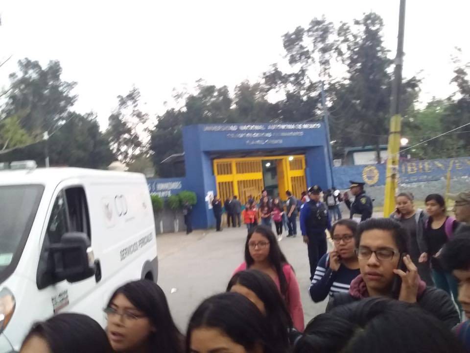 La tarde de este lunes, las autoridades del plantel desalojaron a los alumnos, mientras agentes de la Secretaría de Seguridad Ciudadana (SSC) se presentaban en el lugar acompañados de peritos de la Procuraduría de Justicia capitalina (PGJ).