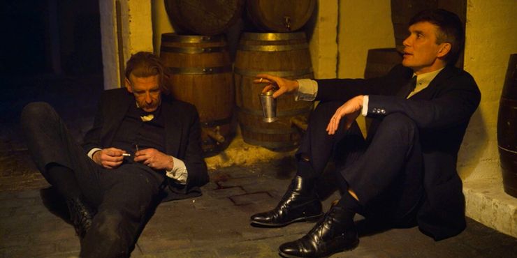 Antes de la escena con fallas, el episodio 4 de Peaky Blinders La temporada 6 comenzó de luto, ya que el funeral de la pobre Ruby Shelby dejó a la familia Shelby arruinada y hecha pedazos. Tommy Shelby lo trató de la forma típica Peaky Blinders moda, buscando y asesinando a la mujer romaní que cree que fue responsable de maldecir a Ruby en venganza por la pérdida de su propia hija. Después de encontrar poco consuelo en su propia venganza sangrienta, un Tommy destrozado encuentra a un Arthur borracho en un rincón oscuro de su bodega. La falla comenzó cuando se unió a Arthur mientras esperaba pacientemente que el barril goteante llenara su taza. Luego, tomando su primer trago en cuatro años, Tommy Shelby se reencuentra con su hermano después de que ambos se distanciaran.