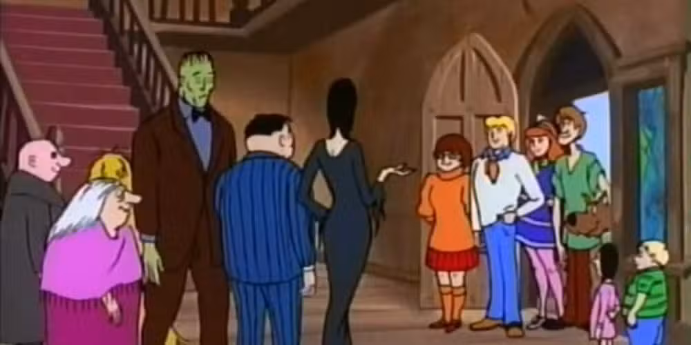 Después La familia addams Terminó, la familia homónima no regresó a la televisión hasta 1972, protagonizada por invitados en uno de los Hanna-Barbera’s Las nuevas películas de Scooby-Doo. En Scooby-Doo conoce a la familia Addamstambién conocido como Falta el miércolesScooby y su pandilla son engañados para que el cuidado de niños el miércoles y Pugsley para que Gómez y Morticia puedan ir a una segunda luna de miel.