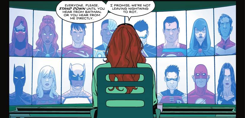 El plan de Bruce de salir a bolsa tampoco es una oferta vacía; Batman ha guardado su propia identidad con mucho celo durante décadas. Si se revela el verdadero nombre de una persona, desencadena un efecto dominó que podría extenderse mucho más allá de la Bat-Familia. Los riesgos que conlleva exponerse son incalculablemente altos y, una vez realizado el acto, sería imposible deshacerlo. Sin embargo, Barbara le asegura a Dick que todos se han ofrecido a dar el paso por él. Tiene mucha gente dispuesta a ayudarlo, como él siempre los ha ayudado.