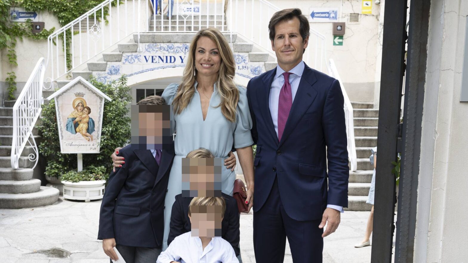 En unas imágenes captadas por la agencia Gtres puede verse cómo la familia al completo ha posado a las puertas de la iglesia mencionada, todos ataviados con looks de lo más elegantes teniendo en cuenta la importancia de la cita. En primer lugar, el protagonista de la Comunión se ha decantado por una chaqueta azul marino a juego con unos pantalones cortos grises y corbata color vino. Un atuendo muy similar al de su hermano mayor mientras que, el pequeño de los tres, lucía un outfit de lo más veraniego con el color azul y el blanco como principales protagonistas. Por su parte, Carla Goyanes hacía uso de un conjunto de dos piezas compuesto por una blusa con escote en V y mangas abullonadas, además de una falda con un ligero volante en la parte frontal en color azul bebé. Una elección de lo más sofisticada, sobre todo teniendo en cuenta las altas temperaturas propias de la capital por estas fechas y la elegancia de la que ha estado dotado este evento.