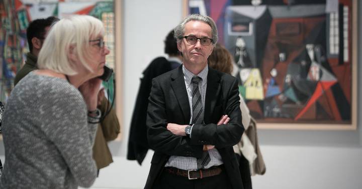 “Picasso es un artista universal y revolucionario que ha sido pintor, escultor y grabador; un genio reconocido desde el comienzo que atraviesa todo un siglo y que tiene, a día de hoy, más notoriedad que hace veinte años, porque las obras de su periodo final no han sido aceptadas hasta los noventa”, asegura, sentado junto a una fotografía del pintor. “Hay artistas que han inventado un mundo, pero Picasso muchos. Es el más conocido del siglo XX, a pesar de que lo es por pocas cosas”, en referencia al Guernica.