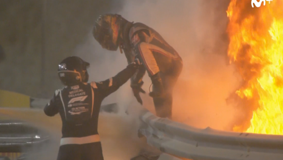 El relato de como Grosjean llegó a abandonar el monoplaza es realmente impactante: “La posición de reposo del chasis, en relación con el carril superior de la barrera, restringió significativamente la vía de salida del conductor. Debido a los daños sufridos por el chasis y por algunos componentes del habitáculo, el pie izquierdo de Romain Grosjean quedó inicialmente atrapado cuando el coche se detuvo. El piloto pudo liberar su pie retirándolo de su bota de carreras dejando la bota atrapada en el coche y luego movió tanto el reposacabezas como el volante para salir del coche”.