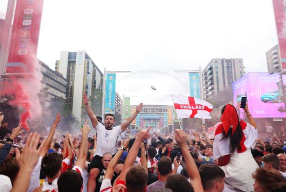 Desde la mañana los aficionados ingleses han iniciado la marcha hacia Wembley, el mítico estadio donde esta noche, a partir de las 21.00, sueñan con que su selección derrote a Italia y gane su primera Eurocopa, que sería su primer gran título desde el Mundial de 1966, hace 55 años. Familias enteras, miles de seguidores de todas las edades, han querido comenzar a vivir la fiesta que supone este partido para los ingleses, al margen de cuál sea el desenlace.