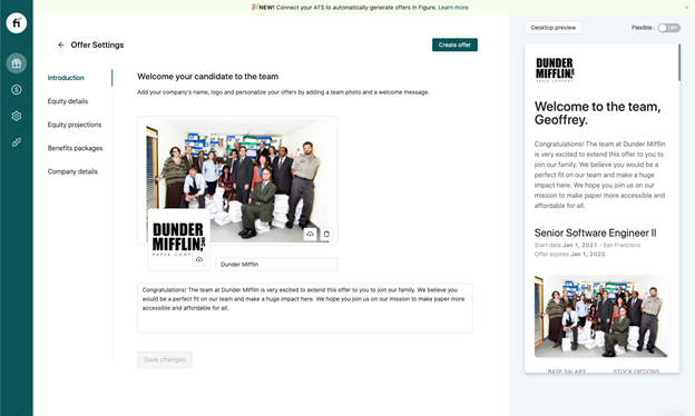 Figure también tiene como objetivo brindar a las empresas las herramientas para educar a los candidatos y empleados sobre su compensación total, incluida la equidad, el salario, los beneficios y las bonificaciones, de una manera “sencilla y fácil de usar”. Por ejemplo, puede crear cartas de oferta personalizadas que detallen de forma interactiva la compensación de un candidato.