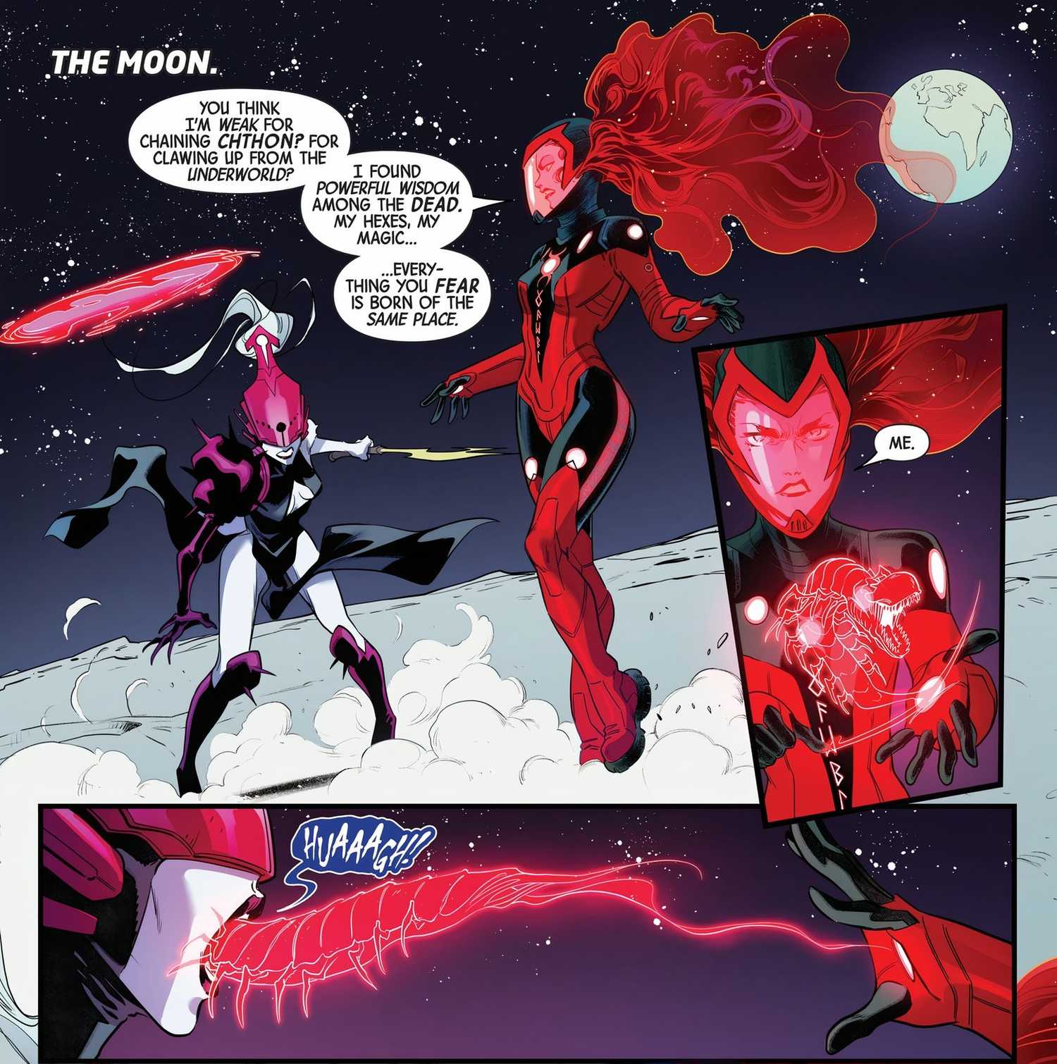 El bruja escarlata ha recorrido un largo camino desde sus inicios; Ha llegado a las profundidades de la magia, atrapó a Chthon dentro de su corazón y ahora está avanzando a las alturas de sus habilidades como Ser Nexus. El Penitente del fin de todas las cosas puede ver la muerte del universo, pero Wanda Maximoff es inmune a la entropía que aporta.