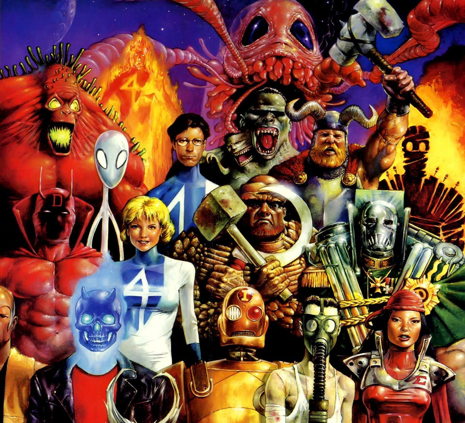 “/> La iniciativa Timeslip también se enfrentó al maestro de Silver Surfer, Galactus, con Scott McDaniel (Ala noche, Flecha verde) convirtiendo a Galán de Taa en una monstruosidad de película B parecida a un calamar, con el lema “¡La cosa que se comió el mundo!” En la versión de McDaniel, Galactus es demasiado inhumano para enfrentarse a un heraldo y simplemente recorre la Tierra sin nada que lo detenga. Es interesante ver a personajes que están particularmente definidos por una brasa parpadeante de humanidad volverse completamente monstruosos; sin embargo, Silver Surfer es una figura mucho más escalofriante, ya que su nueva forma deja en claro cuánto ha perdido. La brillante proyección de su rostro convierte al Surfer y su mortífero barco en una sola entidad.mientras que por su apariencia se desprende inmediatamente exactamente cómo Destruye planeta tras planeta.