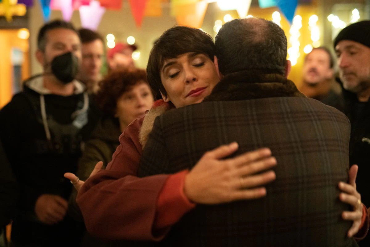 Al fondo de la conversación, Elejalde está rodando con Candela Peña y Carlos Areces, en un momento en el que su personaje decide por fin abrazar a sus amigos sin miedo. La imagen funciona como un espejo para el equipo técnico y artístico, en donde hay igualmente abrazos tras muchos meses de tensión y con la variante ómicron del coronavirus sin haber aparecido todavía en las noticias.
