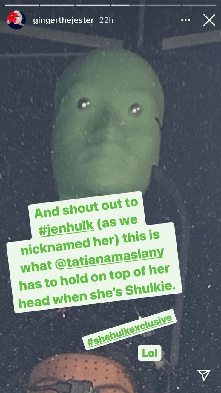 Una foto del set de She-Hulk compartida por el actor Ginger Gonzaga muestra la divertida cabeza de captura de movimiento de Tatiana Maslany cuando su personaje se enfurece.