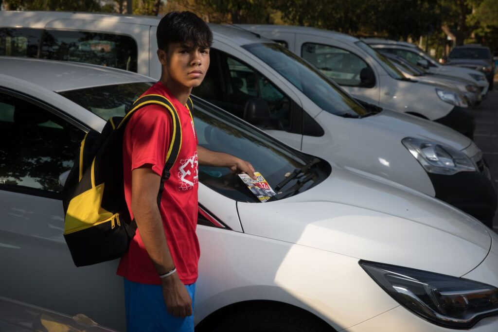 El día a día de Jhonatan Cantalapiedra se resume en dinero: 34 euros por ocho horas de jornada. Es lo que gana repartiendo publicidad por buzones, el único curro que ha encontrado a sus 17 años, una edad en la que intenta bordear un fracaso vital además del educativo. Quería matricularse en Parafarmacia, en grado medio, porque su plan consiste en llegar a estudiar Nutrición, en el superior. Es su sueño porque se mide las calorías de la comida, pesa los alimentos, hace deporte y se cuida al máximo, lo que quiere hacer el resto de su vida, evitando las malas compañías, los porros y el alcohol. “Eso ya lo he vivido en casa y no, lo quiero lejos”, dice, seguro de sí mismo. Los lunes, miércoles y jueves entrena con su equipo de fútbol en el Polideportivo Municipal Juan de la Cierva, en Getafe, donde vive, porque así ha decidido pasar sus días hasta el próximo curso, que volverá a lanzar su moneda al aire. “Lo malo es que dicen que cuando estás tanto tiempo en blanco luego cuesta mucho más ponerte a estudiar”, lamenta.