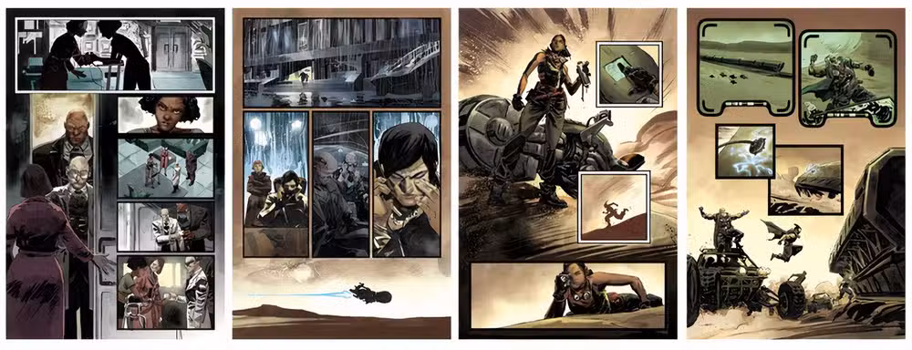 Luego viene los cuatro números Blade Runner: Lotus negro (2022) Miniserie de cómics, que se basa directamente en el anime continuando la historia de Elle mientras cuestiona si puede escapar de su sangriento legado. Finalmente, los lectores pueden recoger Blade Runner: Black Lotus – Salir de Los Ángeles (2023), una apasionante novela gráfica que sigue a Elle huyendo de Los Ángeles en busca de libertad y respuestas tan esperadas.