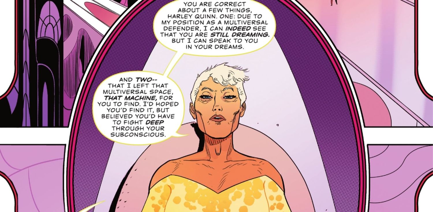 - Lady Quark le dice a Harley Quinn que ella es necesaria para detener las calamidades en el multiverso, a pesar de no ser buscada por el mundo.