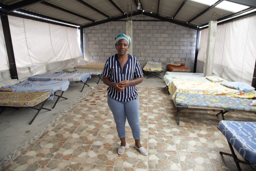 En el patio de la casa de Carmen Carcelén (Ibarra, Ecuador, 1971) se apilan sillas blancas de plástico, colchones y se escucha, al fondo, una tele de plasma encendida, que retransmite una serie de dibujos animados. De una de esas paredes, de cemento repellado, cuelgan las nueve reglas de la Casa de Acogida Juncal, en la que se puede leer: “Sea agradecido, esta casa es de una familia que deseo (sic) abrir las puertas para recibirlo a usted”.