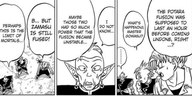 En Dragon Ball Súper Capítulo 23 de Akira Toriyama y Toyotarou, Goku y Vegeta usan los Pendientes Potara para convertirse en Vegito y luchar contra el inmensamente poderoso dios inmortal Zamasu. Zamasu deseó que las Super Dragon Balls lograran la inmortalidad y usó su poder para diezmar el mundo de Future Trunks con el objetivo de erradicar toda la vida mortal en el multiverso. En un último esfuerzo por detenerlo, Vegeta y Goku se fusionan, y una vez que se convierten en Vegito, no retienen su fuerza combinada en un intento improbable de igualar el poder de Zamasu y destruirlo lo más rápido posible mientras vigilan. su límite de tiempo de una hora. Sin embargo, debido a la cantidad de energía que Vegito estaba usando, esa hora se interrumpió y la fusión de Goku y Vegeta solo duró unos minutos, dejándolos en un estado debilitado después de separarse y dándole a Zamasu una gran ventaja sobre ellos.