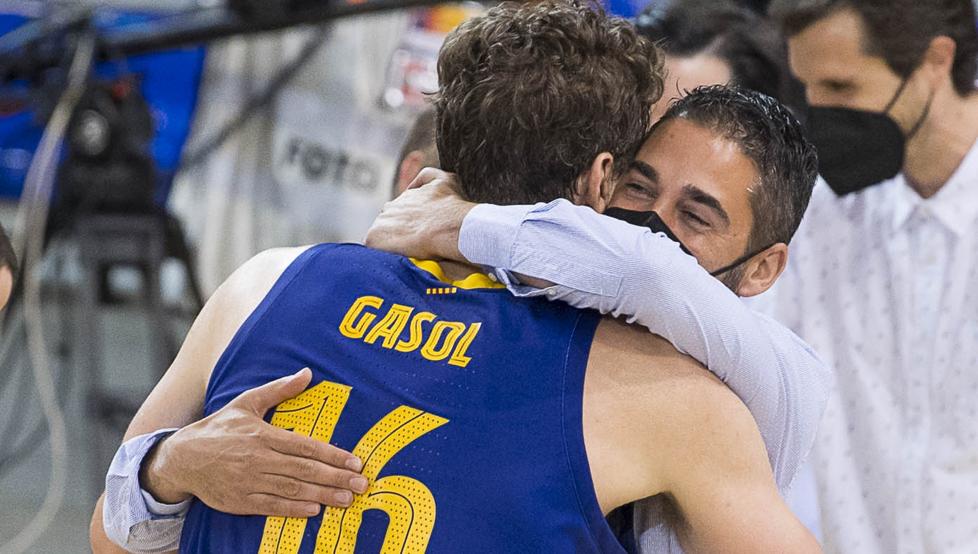 El dirigente azulgrana, que se fundió en varios abrazos con Saras Jasikevicius, Pau Gasol y Nikola Mirotic, entre otros jugadores, emergió del vestuario de los campeones visiblemente satisfecho por el doblete cosechado por el equipo en la temporada 2020-2021.